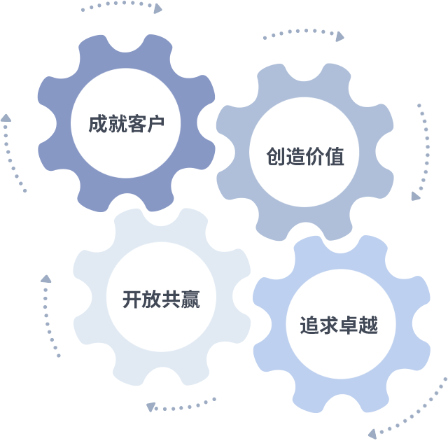 成就客户是一切决策的出发点,创造价值是衡量所有工作的标准,追求卓越是国际人做事做人的态度,开放共赢是国际人的格局也是最终的结果。价值观的齿轮环环相扣,推动着组织里的每个人不断向前。